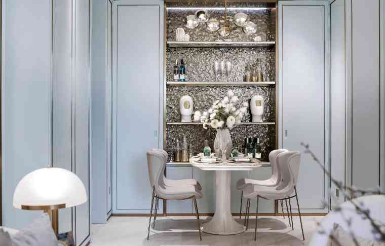 蒂芙尼藍柔和的色彩提升幸福感和歸屬感。時尚與美學(xué)在其中跳躍,驚起一絲慵懶與愜意的波瀾,又平添一份驚鴻一瞥的包容。獨立的洗手臺面和懸吊的藝術(shù)掛鏡,無一不彰顯.定制的私享品質(zhì)感。藝術(shù)空間給予了人們對生活的美好向往。未來家庭生活的憧憬讓整個主臥空間浸潤在藍寶石般的幸福感之中。美好的蒂芙尼藍貫穿空間始末,細(xì)節(jié)處流露對生活品質(zhì)的追求,清透雅潔的整體空間并無太多隆重元素的表達,但是已經(jīng)蘊含簡約而不簡單的生活真諦。奧黛麗·赫本在電影《蒂芙尼的早餐》里曾說:“在蒂芙尼,永遠只有好事發(fā)生”。最幸福的顏色,醞釀出精致、浪漫的格調(diào),讓人滿懷期待。熱愛生活,永遠只有好事發(fā)生!