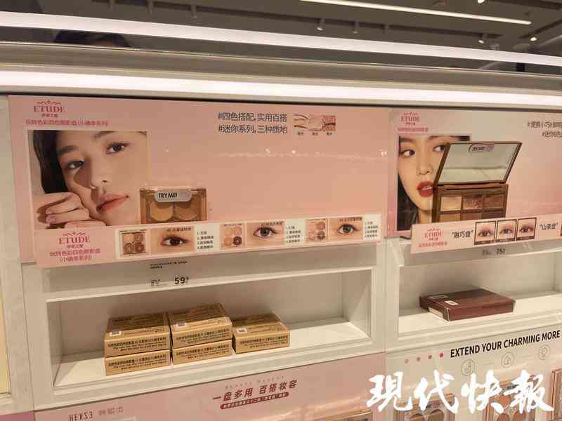 現(xiàn)代快報(bào)記者注意到,在美妝集合店內(nèi),以伊蒂之屋為代表的韓妝僅占一小塊區(qū)域,店內(nèi)更多的柜臺(tái),則被國(guó)貨美妝占領(lǐng)。所有商品都放置在統(tǒng)一設(shè)置的貨架上,伊蒂之屋的產(chǎn)品在其中并不是特別突出。
