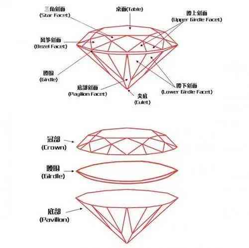 包含1臺面、8風(fēng)箏刻面、8星形刻面、16腰上小面、16腰下小面、8底部主刻面,及一可能有或沒有的尖底。