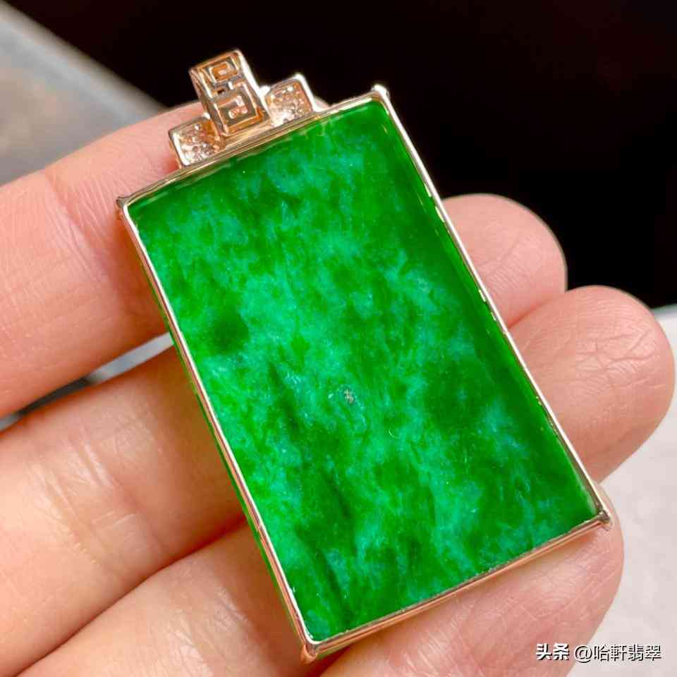 例如上圖這件翡翠無事牌,質(zhì)地較之前面兩件冰種翡翠雖然要差不少,但勝在有鮮艷濃郁的滿綠色彩。
