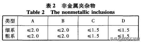 (1)非金屬夾雜物合格級別見表2。檢驗標準按GB/T10561——2005執(zhí)行。