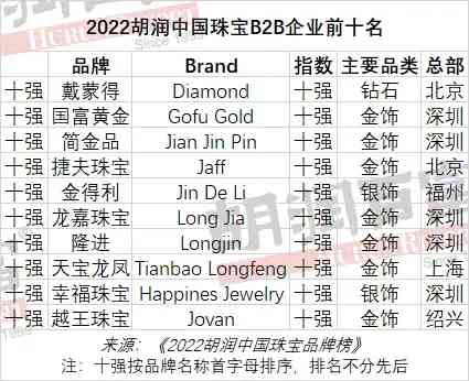 2022胡潤中國珠寶B2B企業(yè)前十名