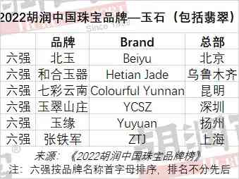 2022胡潤中國珠寶品牌—玉石(包括翡翠)