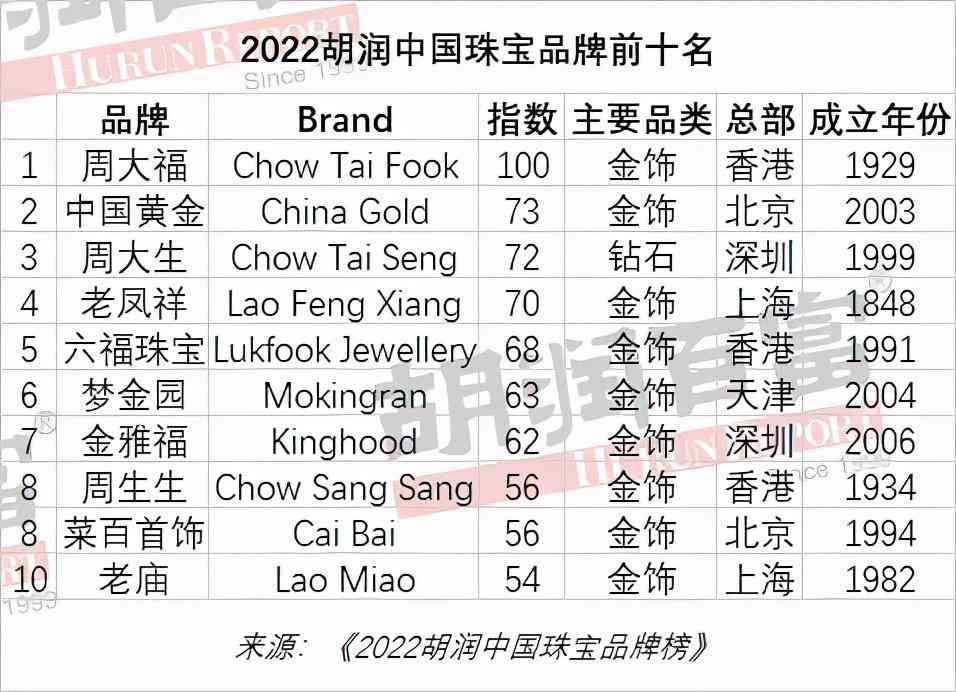 2022胡潤中國珠寶品牌—深圳地區(qū)十強