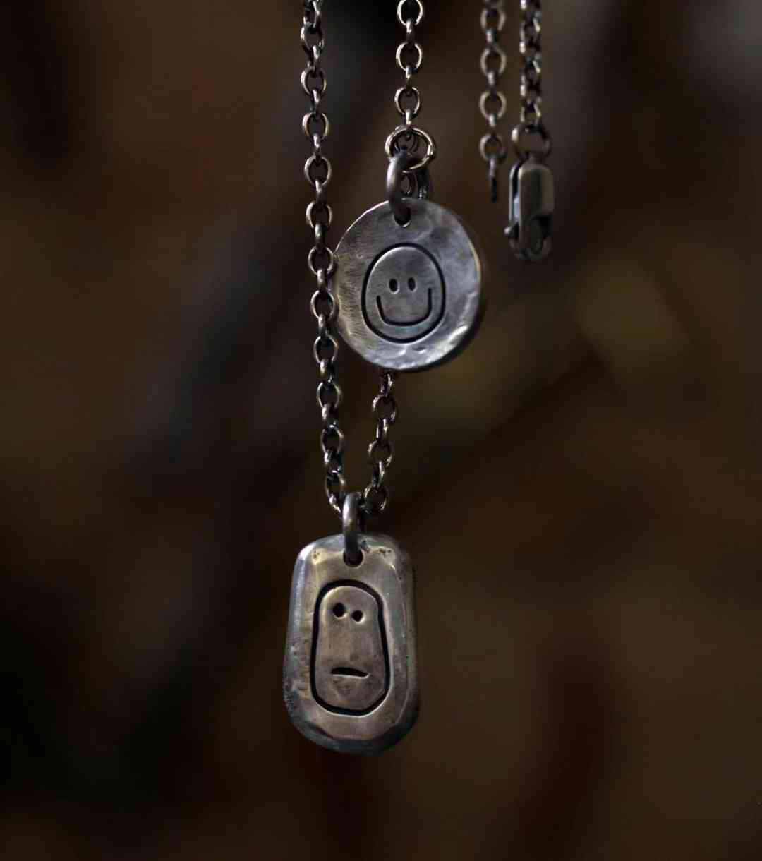 這款吊墜就是以“沒頭腦”和“不高興”為元素,圖案俏皮又有親切感,材質(zhì)選用S999純銀,有分量感,采用傳統(tǒng)的手工鍛造、鏨刻,并用古法琉璃工藝做舊,質(zhì)感古樸又文藝。