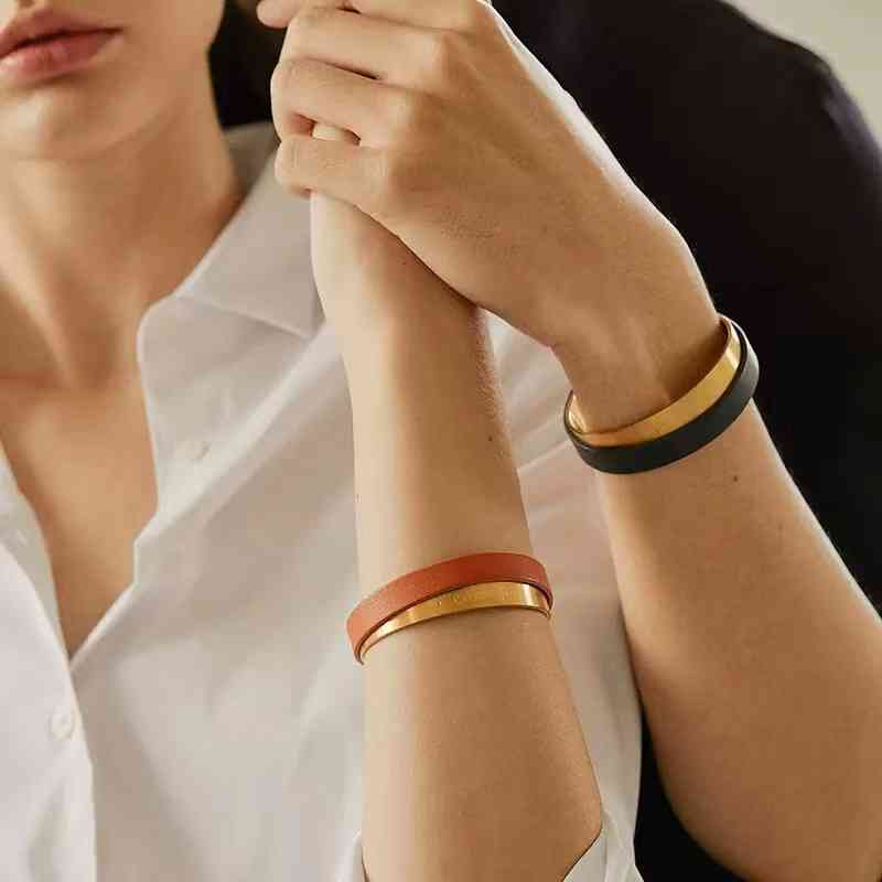 這款手鐲里層是進口的鈦鋼材質(zhì),外層是精選法國進口頭層牛皮制作的皮帶,皮帶的色彩來自油畫的配色,復(fù)古又時尚。