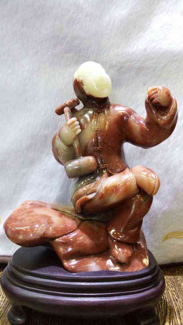 除了用于制作印章外,壽山石在雕刻人物、花鳥、器皿等也是難得的雕刻材料,“溫潤光澤,易于奏刀”這是壽山石適于雕刻的特征。在1965年,福州市考古工作者在市區(qū)北郊五風(fēng)山的南朝墓中出土兩只壽山石豬傭,說明了壽山石至少于1500多年前的南朝已被用作雕刻材料。