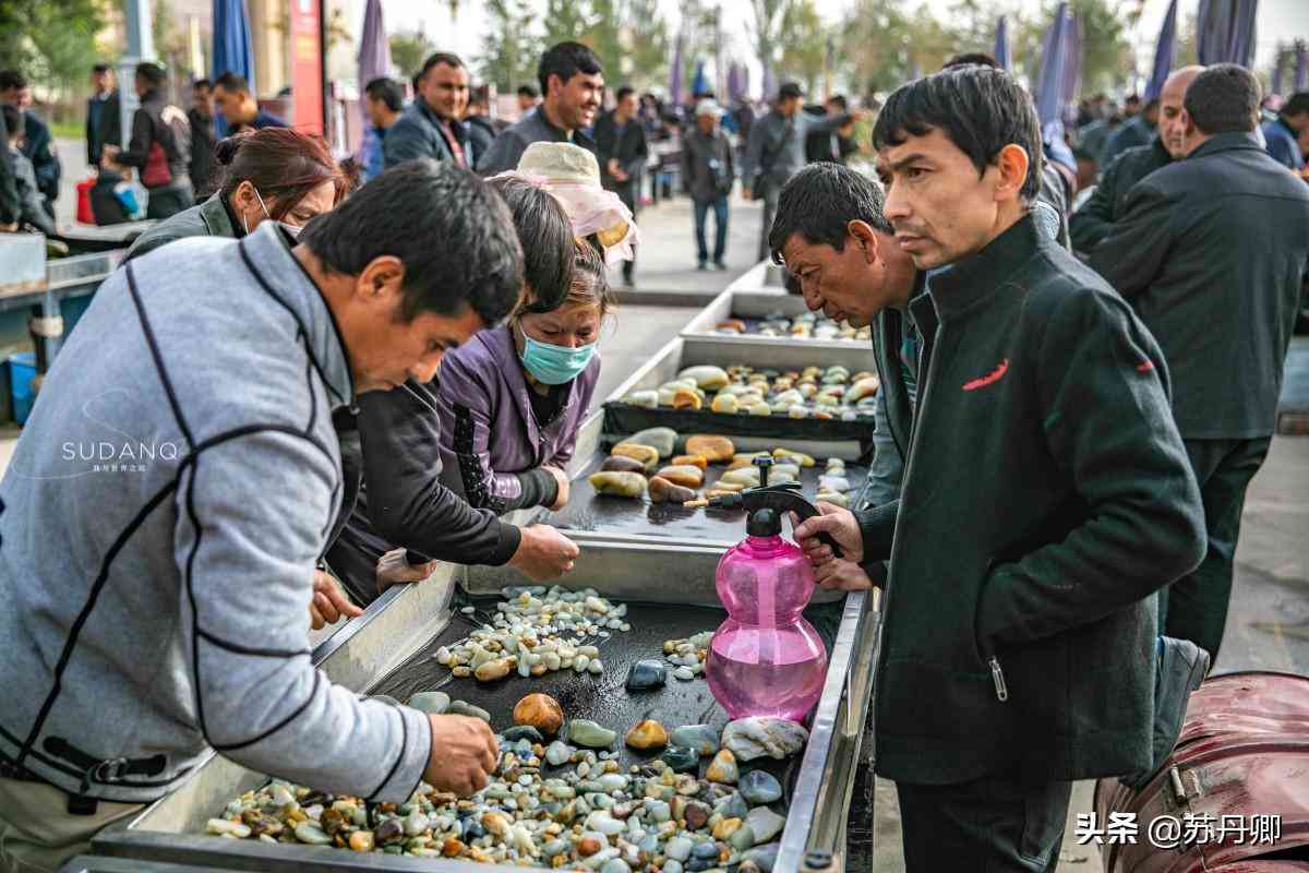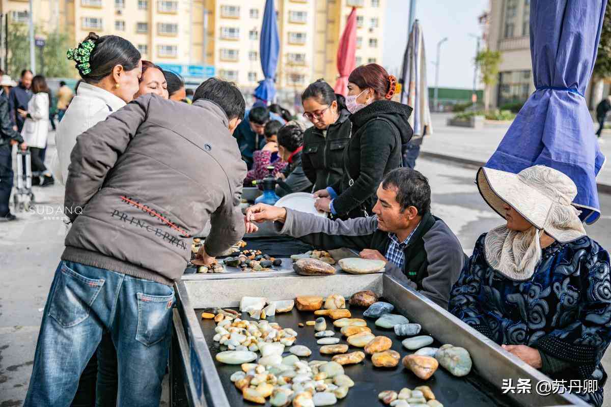 若真想去買玉,絕大多數(shù)人會去附近的和田玉都城,這是和田市八大重點市場之一,占地面積約100畝,是一個超級大型的和田玉集散中心。在這里,每天有大量文玩人士和游客游走其中。最熱鬧,最其中的區(qū)域就是露天下的玉石集散點,像極了古玩市場,令我異常興奮。