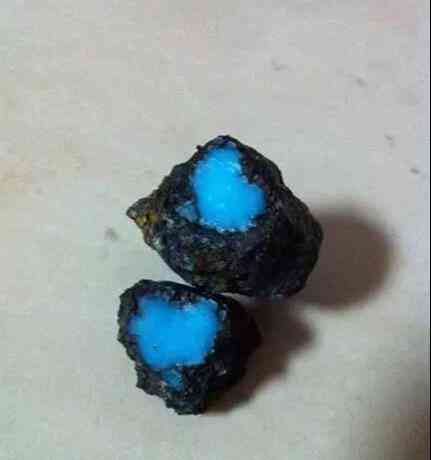 產(chǎn)于安徽銅陵的籽料,因為硫酸銅的原因。