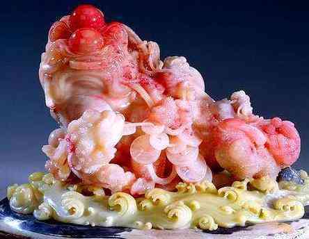 【7】壽山石。產(chǎn)于福建福州市晉安區(qū)壽山村,是中國(guó)傳統(tǒng)“四大印章石“之一,已開(kāi)采了1500多年,品種有幾十種。色彩斑斕、脂潤(rùn)晶瑩、色界分明,2003年,壽山石被定為“國(guó)石”的候選石。
