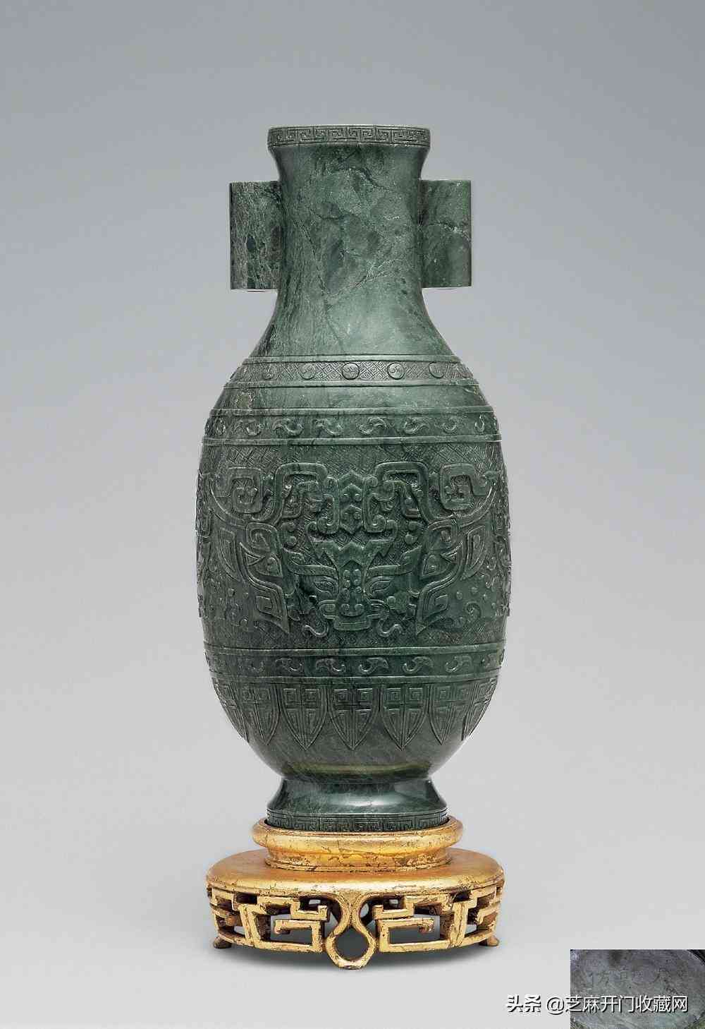 清乾隆碧玉仿古獸面紋貫耳瓶,尺寸:高42厘米,估價:RMB 900,000 ~ 1,200,000,成交價: RMB 896,000