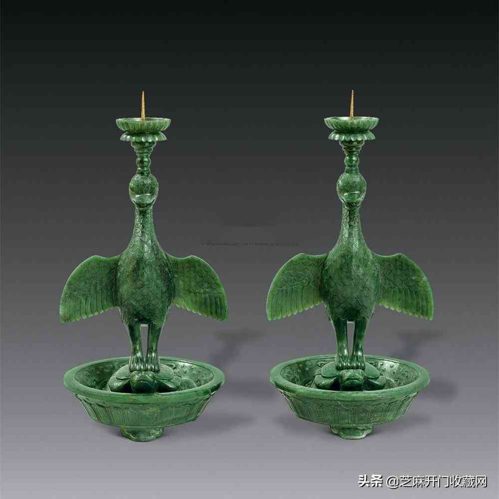 清碧玉海晏河清燭臺(一對),尺寸:高26厘米×2,估價:RMB 700,000 ~ 1,200,000,成交價: RMB 896,000
