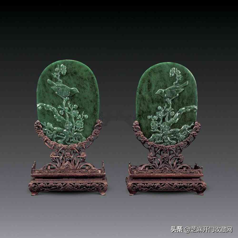 清乾隆碧玉雕花鳥紋插屏(一對),尺寸:高20厘米×2,估價:RMB 800,000 ~ 1,200,000,成交價:RMB 896,000