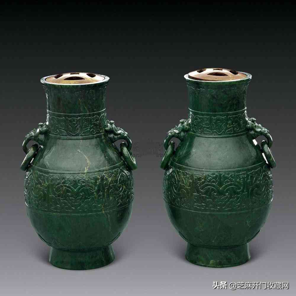 清乾隆碧玉仿青銅紋雙環(huán)耳壺(一對),尺寸:高23.5厘米,估價:RMB 800,000,成交價: RMB 806,400