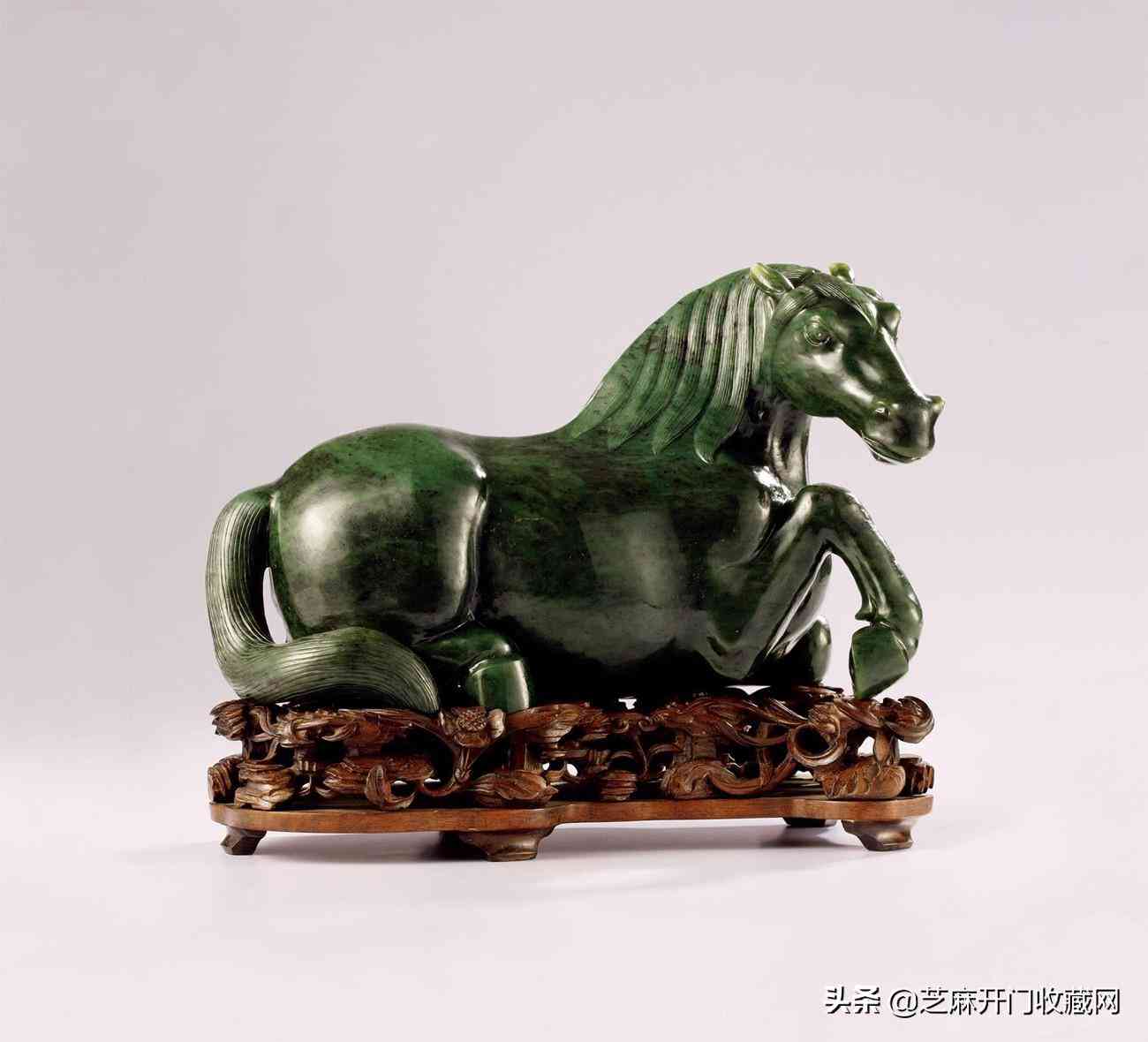 清乾隆碧玉圓雕臥馬擺件連座,尺寸:長28厘米;高17厘米,估價:RMB600,000,成交價: RMB 793,500