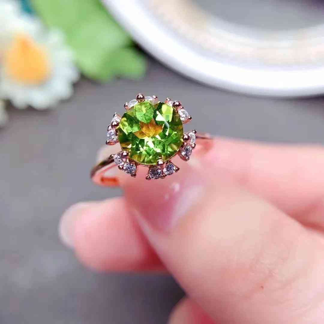 主石:天然橄欖石8mm圓形戒面