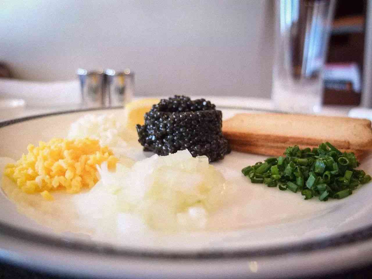 漢莎航空頭等艙供應(yīng)的魚子醬佐餐 (圖片來源:Boarding Area)