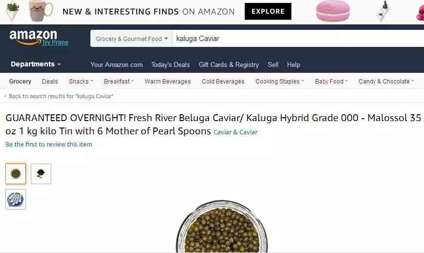 每經(jīng)小編(微信號(hào):nbdnews)在亞馬遜官網(wǎng)找到了該中國品牌旗下的大白鱘魚子醬(Beluga Caviar)。據(jù)了解,大白鱘魚子醬屬于.黑魚子醬的一種。
