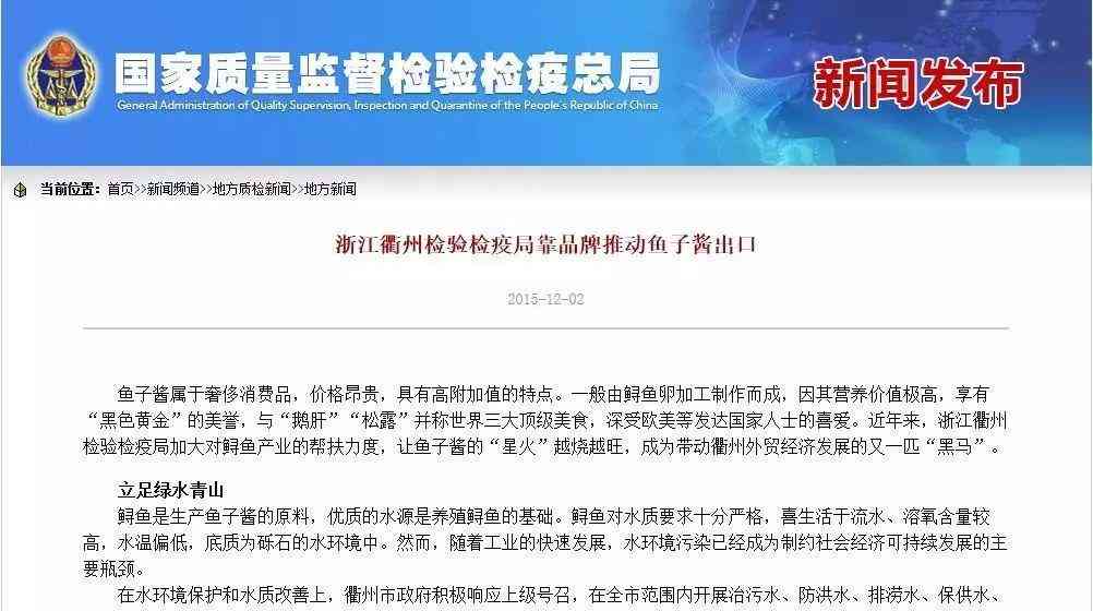 根據(jù)衢州出入境檢驗(yàn)檢疫局統(tǒng)計(jì),2016年衢州轄區(qū)魚子醬出口量達(dá)48噸、貨值1761萬美元,連續(xù)第五年實(shí)現(xiàn)穩(wěn)定增長。