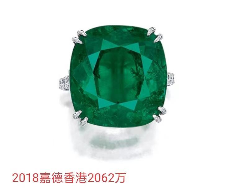 兩千萬級(jí)數(shù)的還有分別成交于蘇富比2018的嵌25.77克拉的方形鉆石戒指,成交價(jià)為2304萬元。和北京保利2018香港秋季拍賣會(huì)成交的5.0克拉緬甸抹谷鴿血紅紅寶石和5.0克拉D色鉆石戒指,成交價(jià)為2162萬元。以及成交于中國嘉德2018香港秋拍的一枚嵌19.69克拉哥倫比亞天然祖母綠的戒指,成交價(jià)為2062萬元。