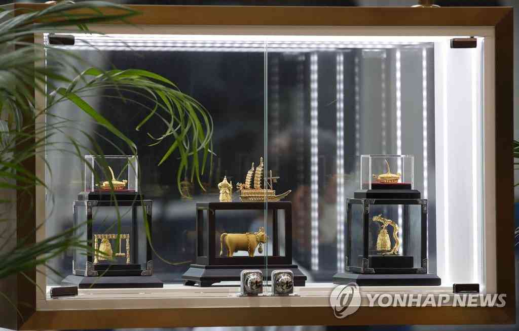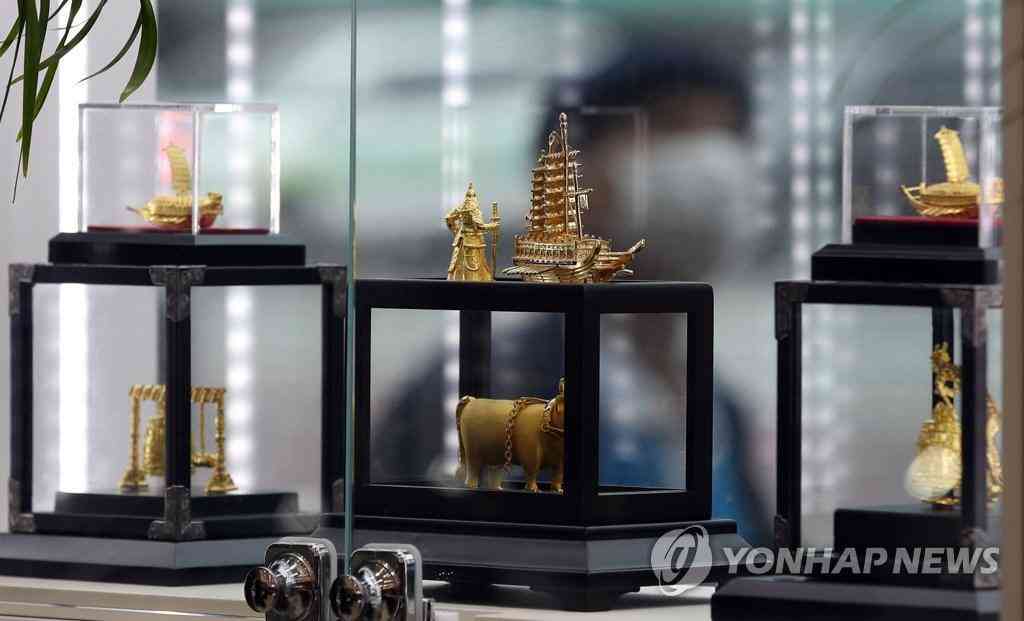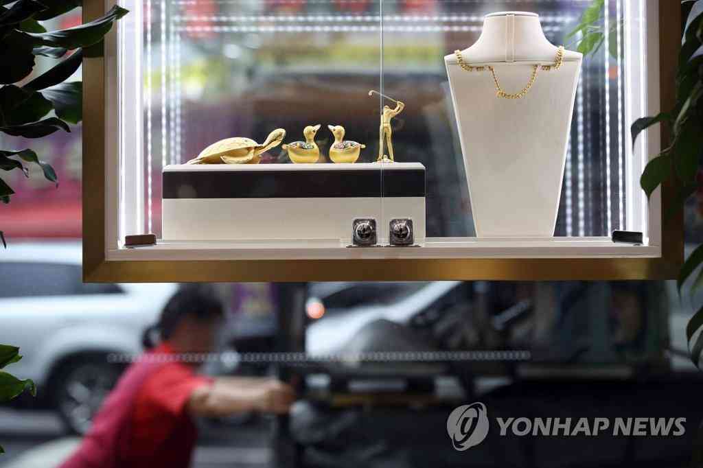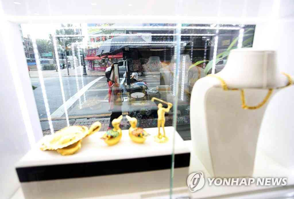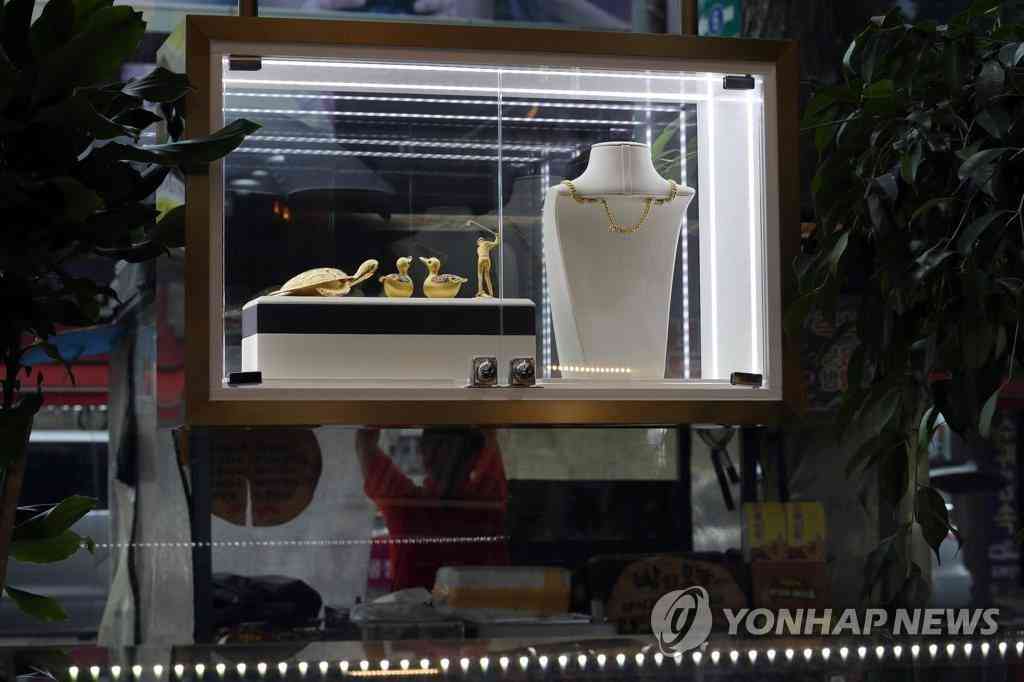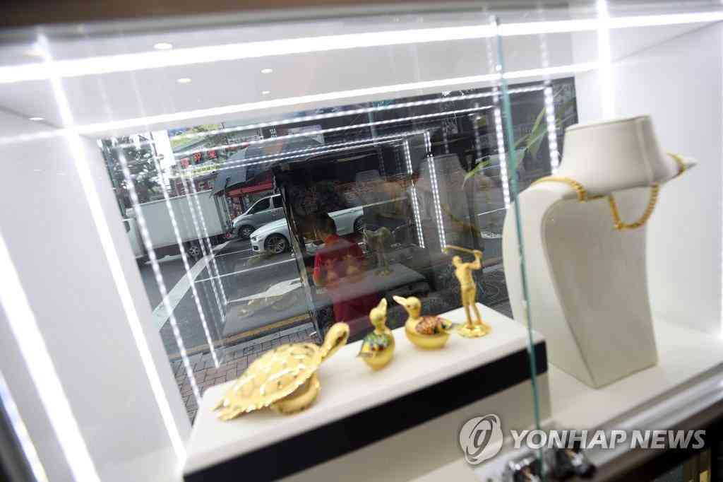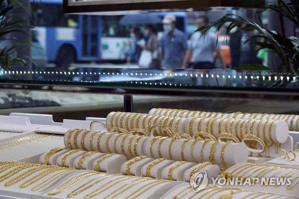 7月23日,在首爾鐘路區(qū)韓國黃金交易所,柜臺(tái)上擺放著各種黃金飾品。