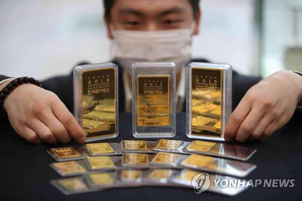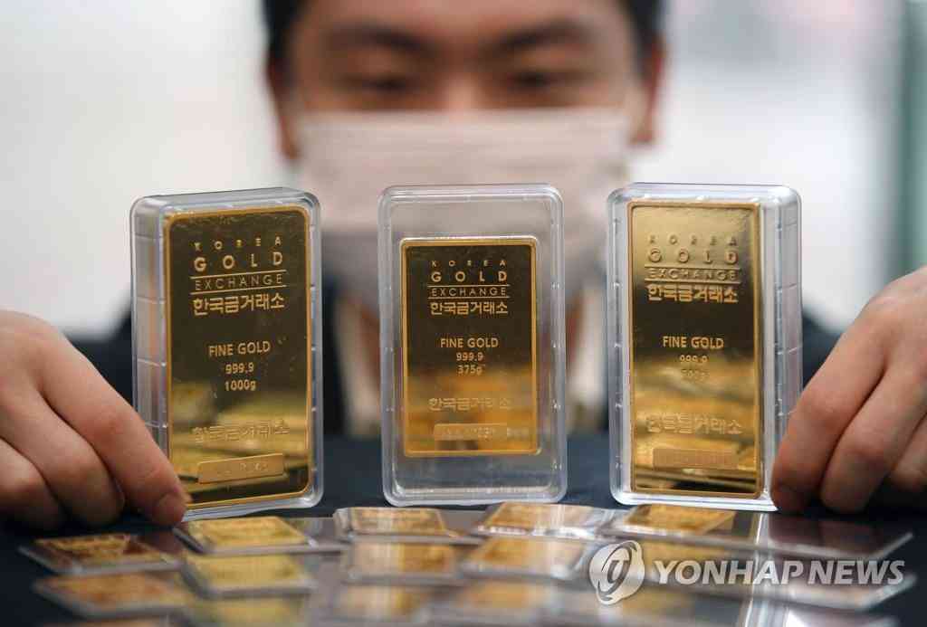 圖為首爾鐘路區(qū)韓國黃金交易所的金條。