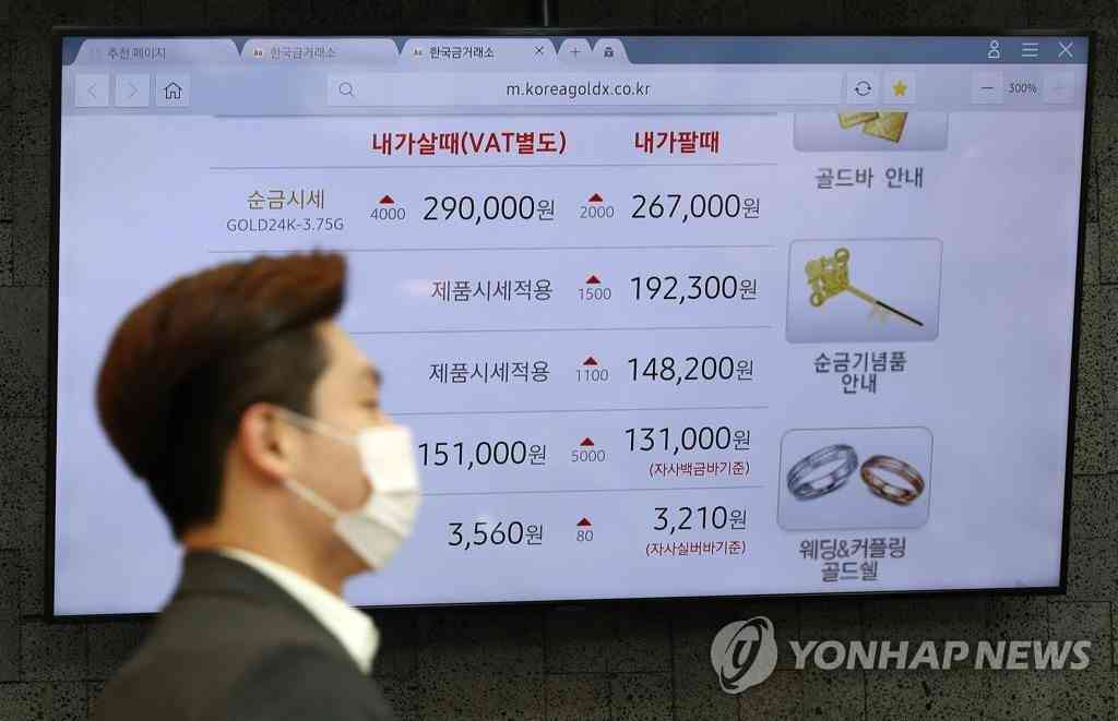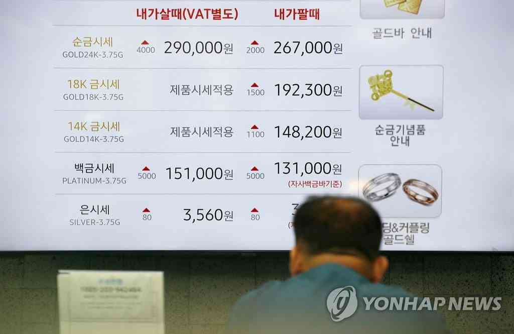 7月23日,在首爾鐘路區(qū)韓國黃金交易所,電子屏幕上顯示著黃金市場行情。