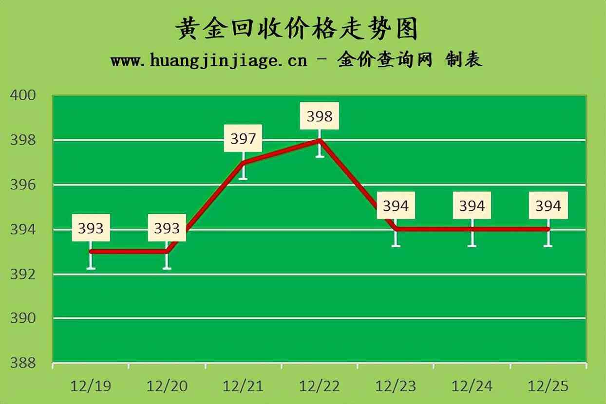 黃金回收價(jià)格394元/克,鉑金回收價(jià)格197元/克,鈀金回收價(jià)格357元/克,18K金回收價(jià)格291元/克,銀條回收價(jià)格3.8元/克。(黃金行情是波動(dòng)的,回收金價(jià)沒(méi)有固定標(biāo)準(zhǔn)。)