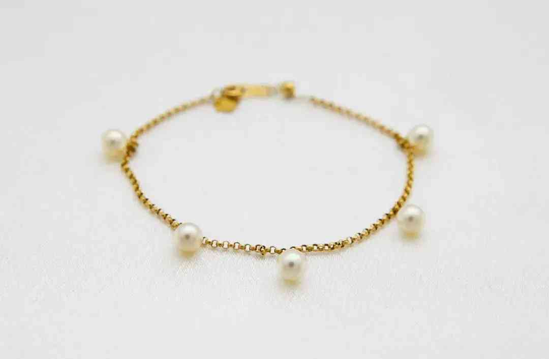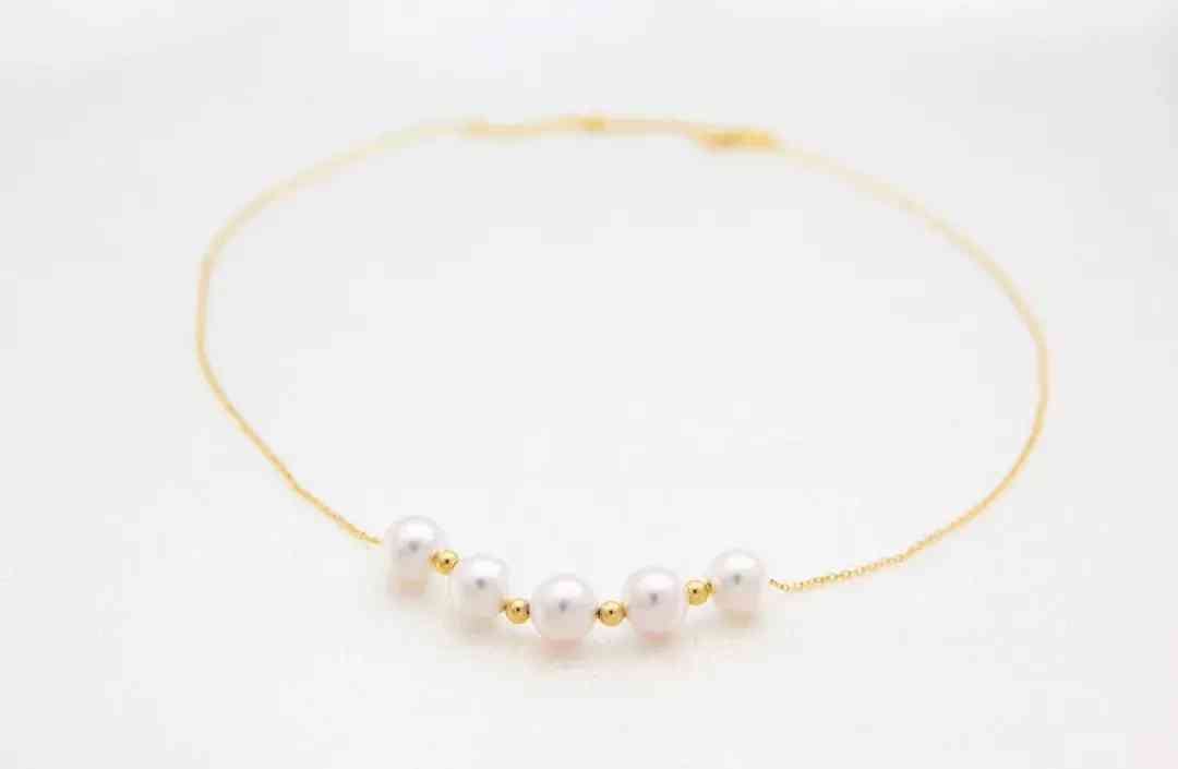 18K黃金配日本Akoya 5-6mm Baby櫻花粉珍珠手鏈