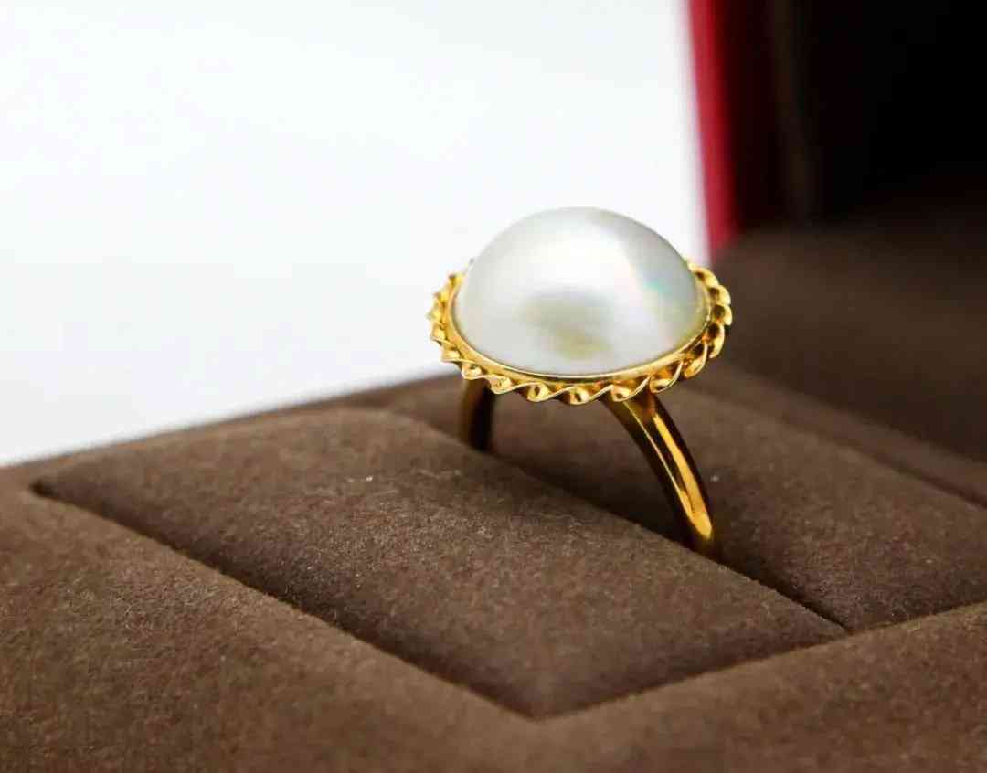 12-13mm極光炫彩圓形馬貝珍珠18K黃金戒指