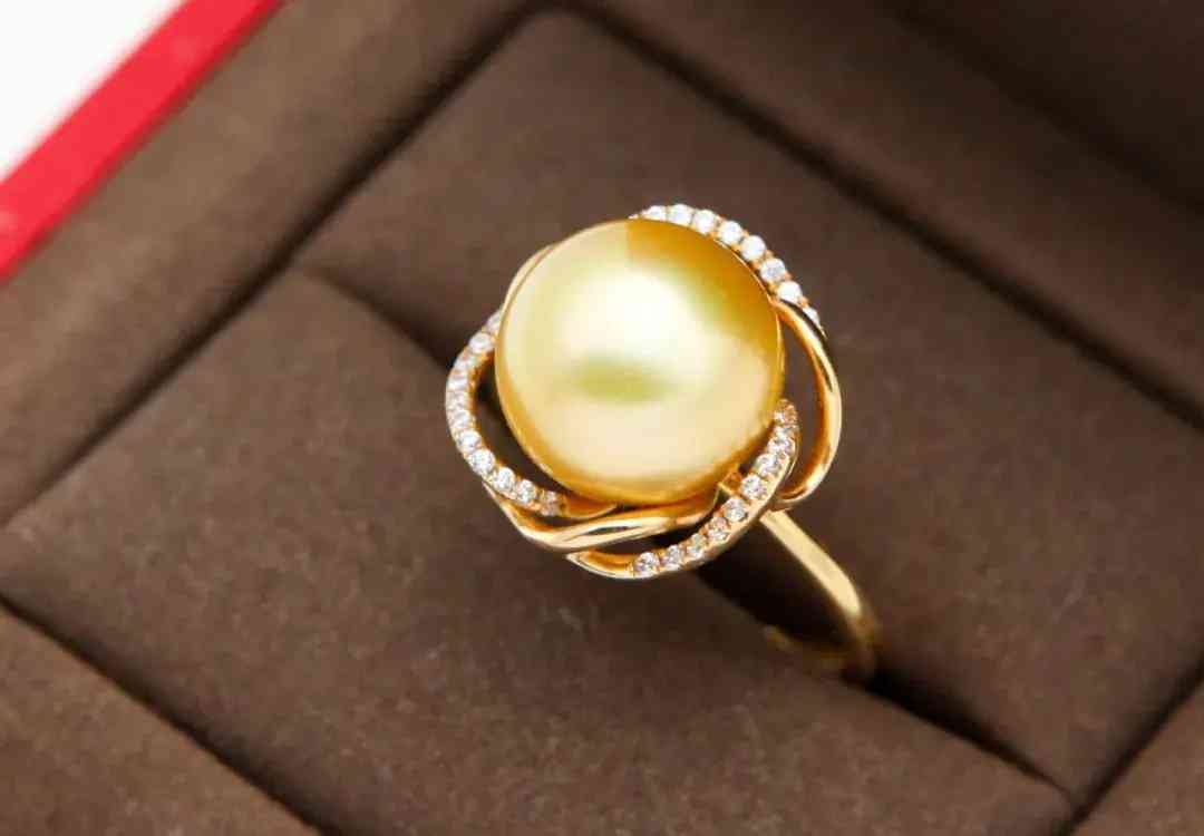 10-11mm南洋金珍珠配14K黃金鉆石戒指