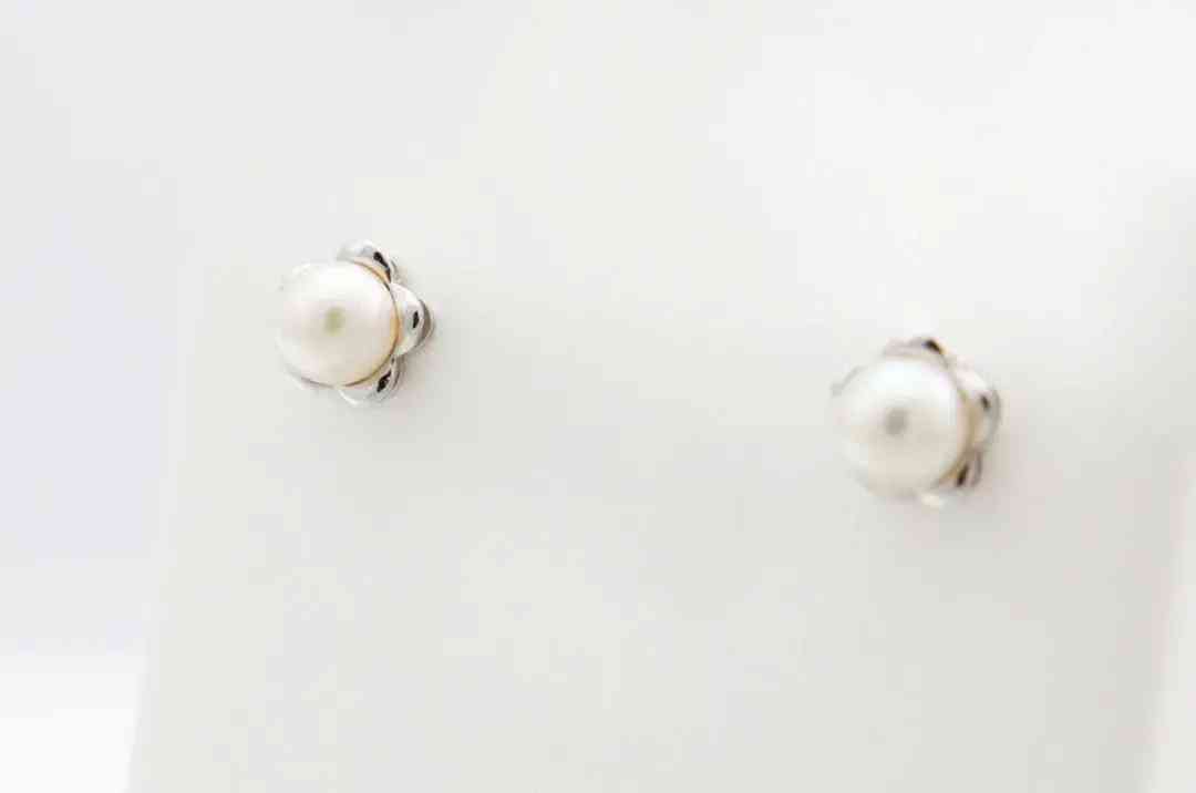 14K白金配日本Akoya 7mm櫻花粉珍珠耳釘