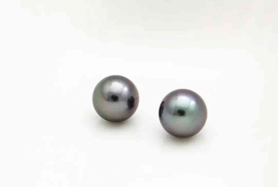 18K金配9mm大溪地極品鉑金灰珍珠耳釘