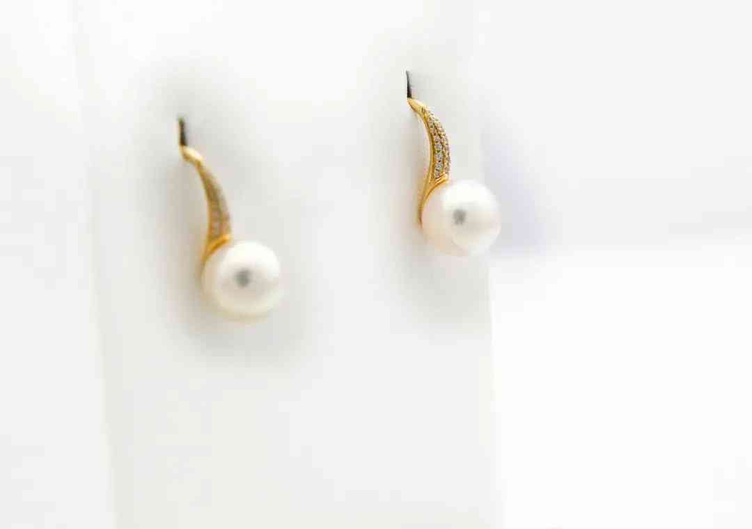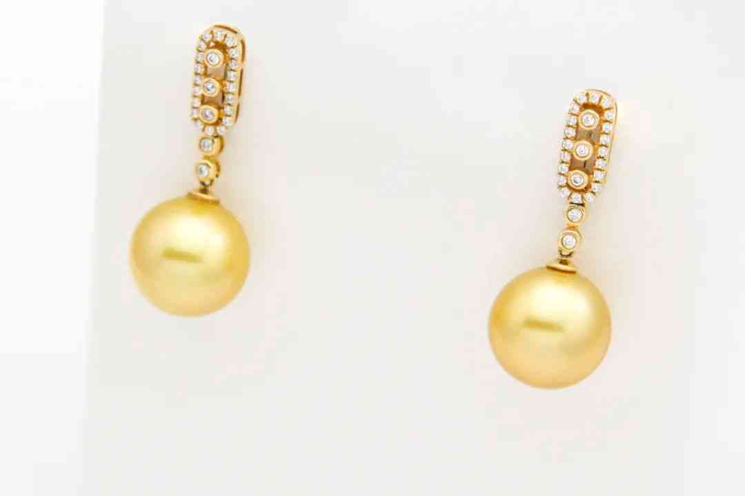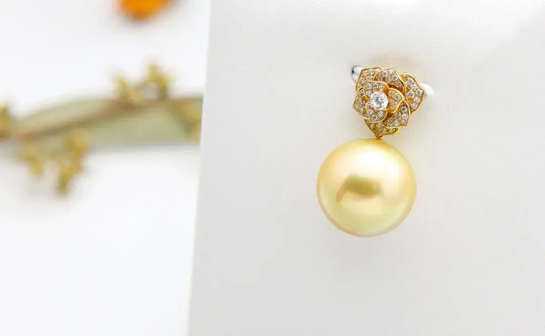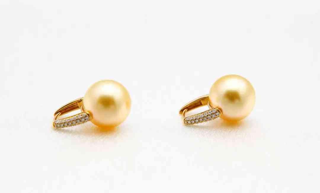 12-13mm南洋濃金珍珠配18K黃金鉆石耳釘