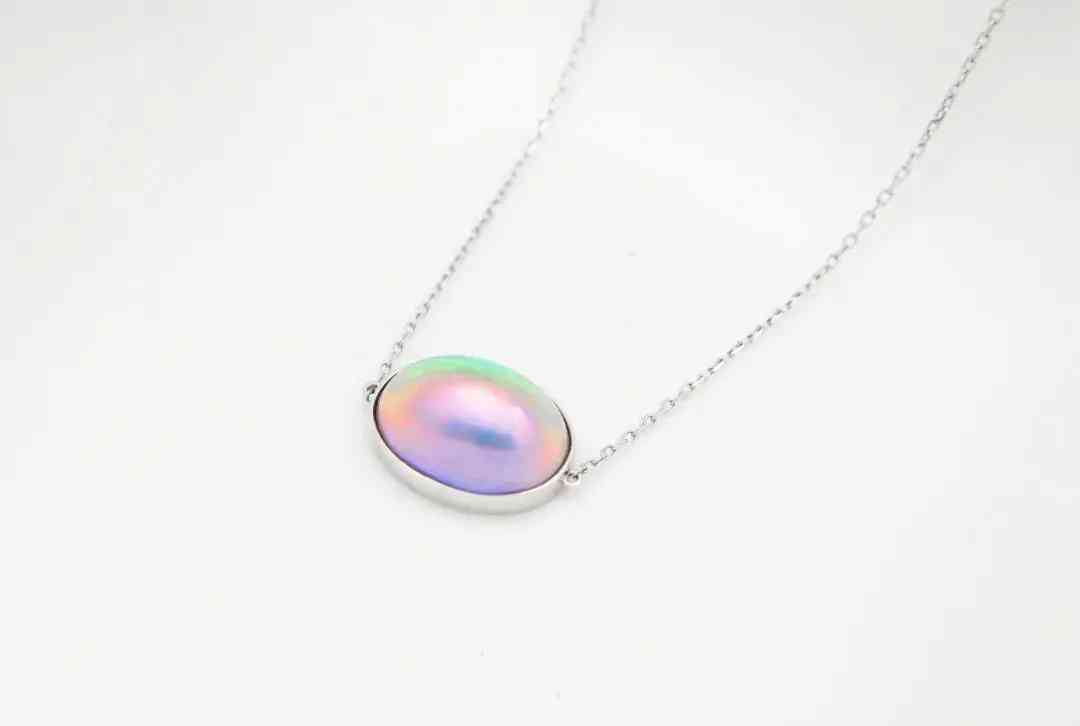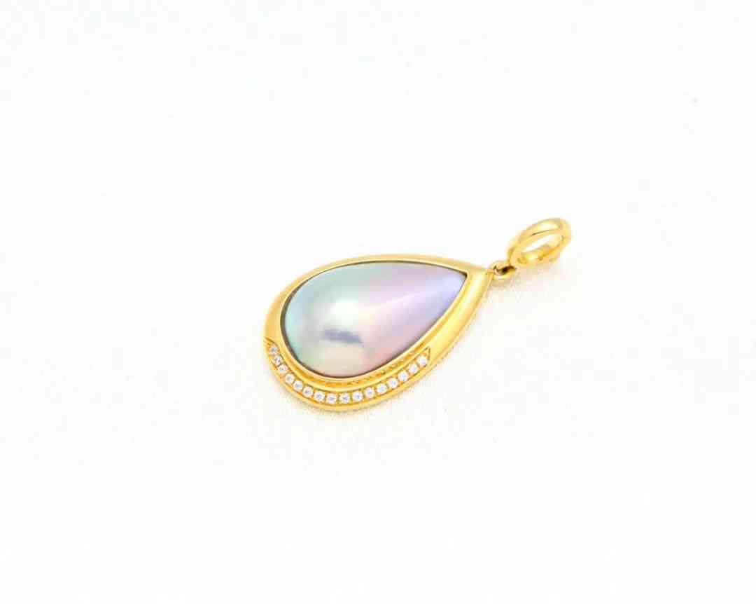 20mm極光炫彩水滴形馬貝珍珠項鏈吊墜配18K黃金配件