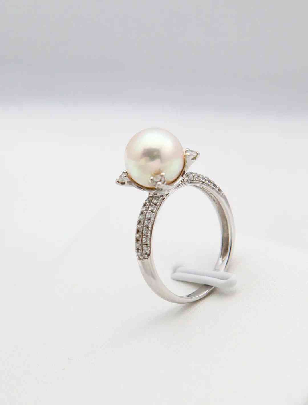 14K白金日本田崎Tasaki平衡木款8-9mm Akoya珍珠戒指