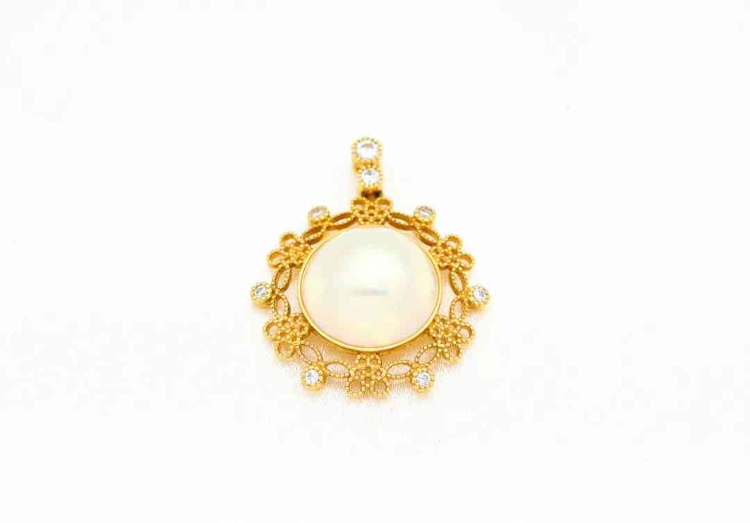 15mm南洋濃金圓形珍珠吊墜配14K黃金玫瑰形配件