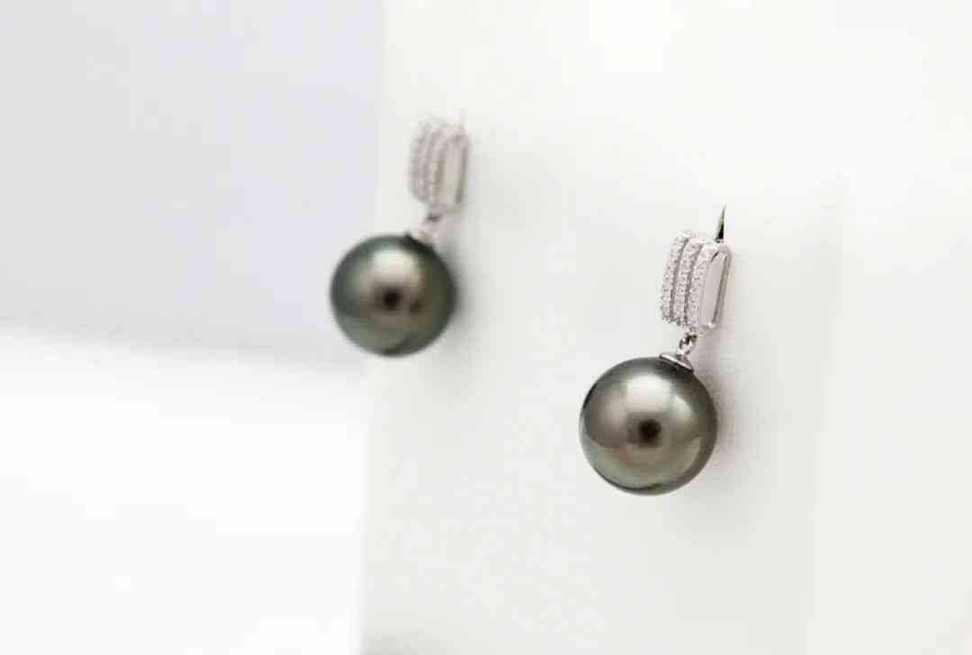 11-12mm大溪地炫彩珍珠配14K白金經(jīng)典款耳墜