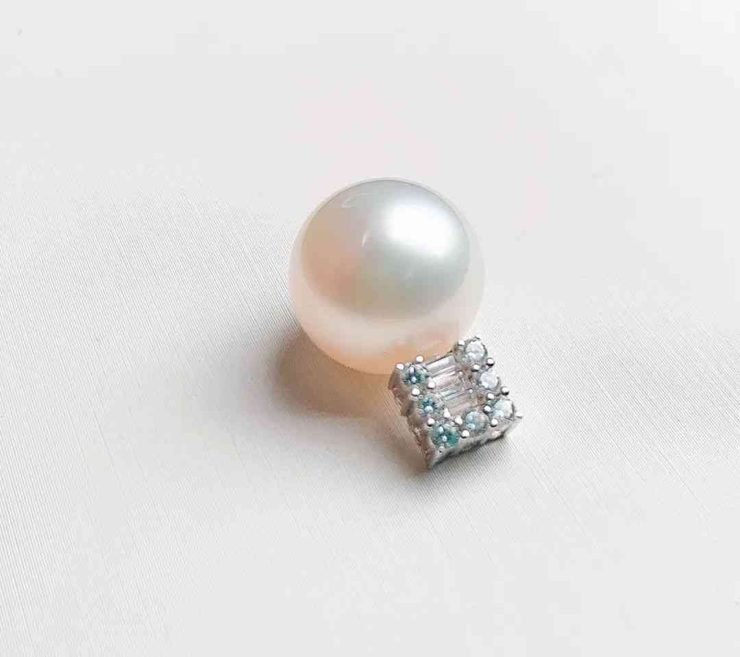13mm澳洲南洋冷光白珍珠吊墜配14K白金正方形配件