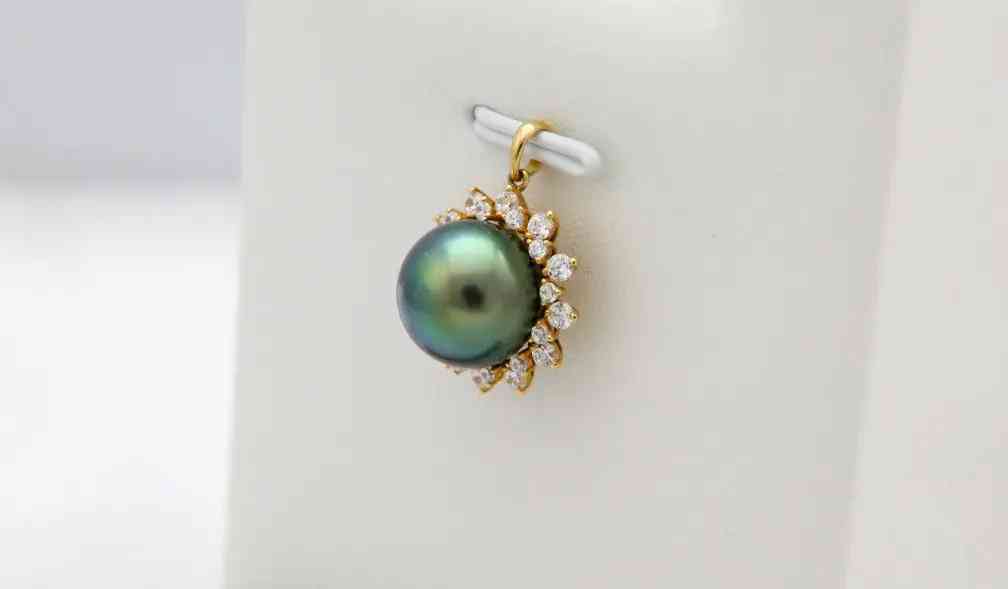 11-12mm大溪地極品孔雀綠珍珠吊墜配14K黃金配件