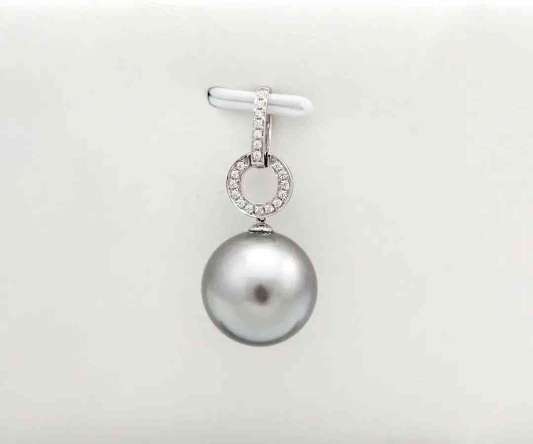 14-15mm大溪地鉑金灰色圓形珍珠吊墜配14K白金經(jīng)典卡地亞款式配件