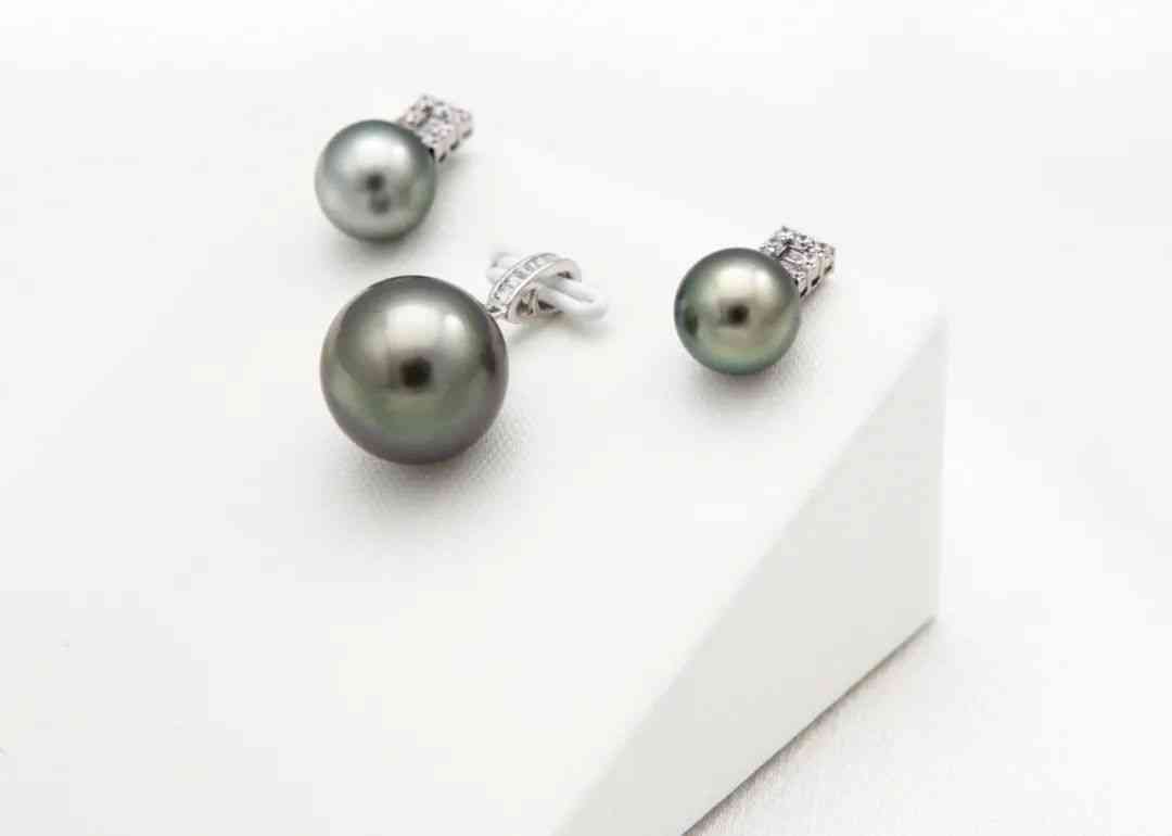 14K白金配10mm及14-15mm大溪地極品鉑金灰珍珠項鏈吊墜及耳墜一套