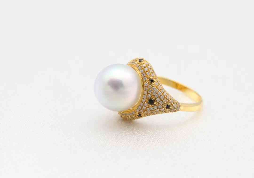 12mm澳洲南洋冷光白珍珠配14K黃金戒指