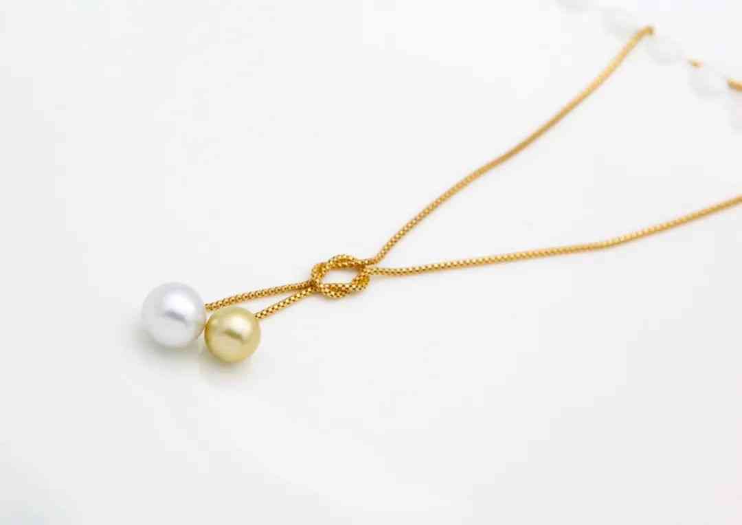 18K重金意大利設(shè)計師情人結(jié)款項鏈配11-12mm南洋濃金珍珠吊墜及13-14mm澳洲冷光白珍珠吊墜