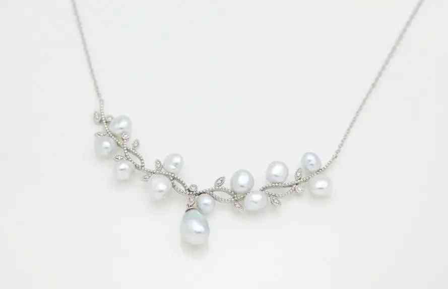18K白金澳洲南洋野生keshi冷光白珍珠項鏈澳洲南洋野生keshi珍珠