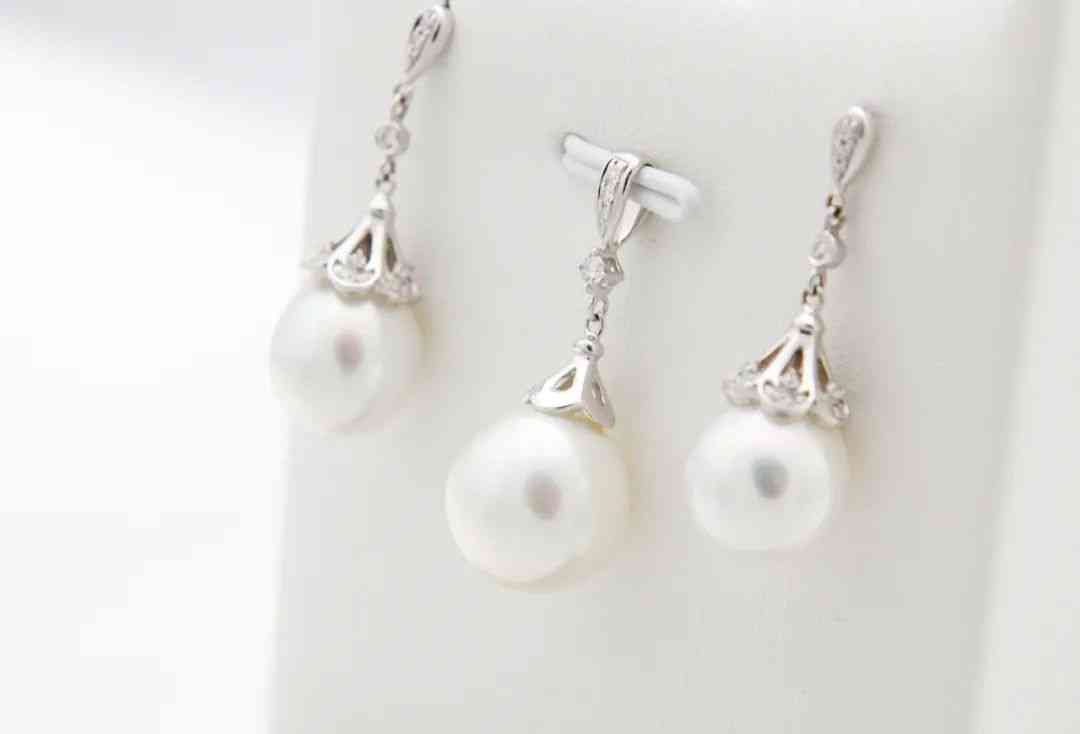10-11mm及11-12mm澳洲南洋冷光白水滴形珍珠配14K白金耳墜、項鏈吊墜一套