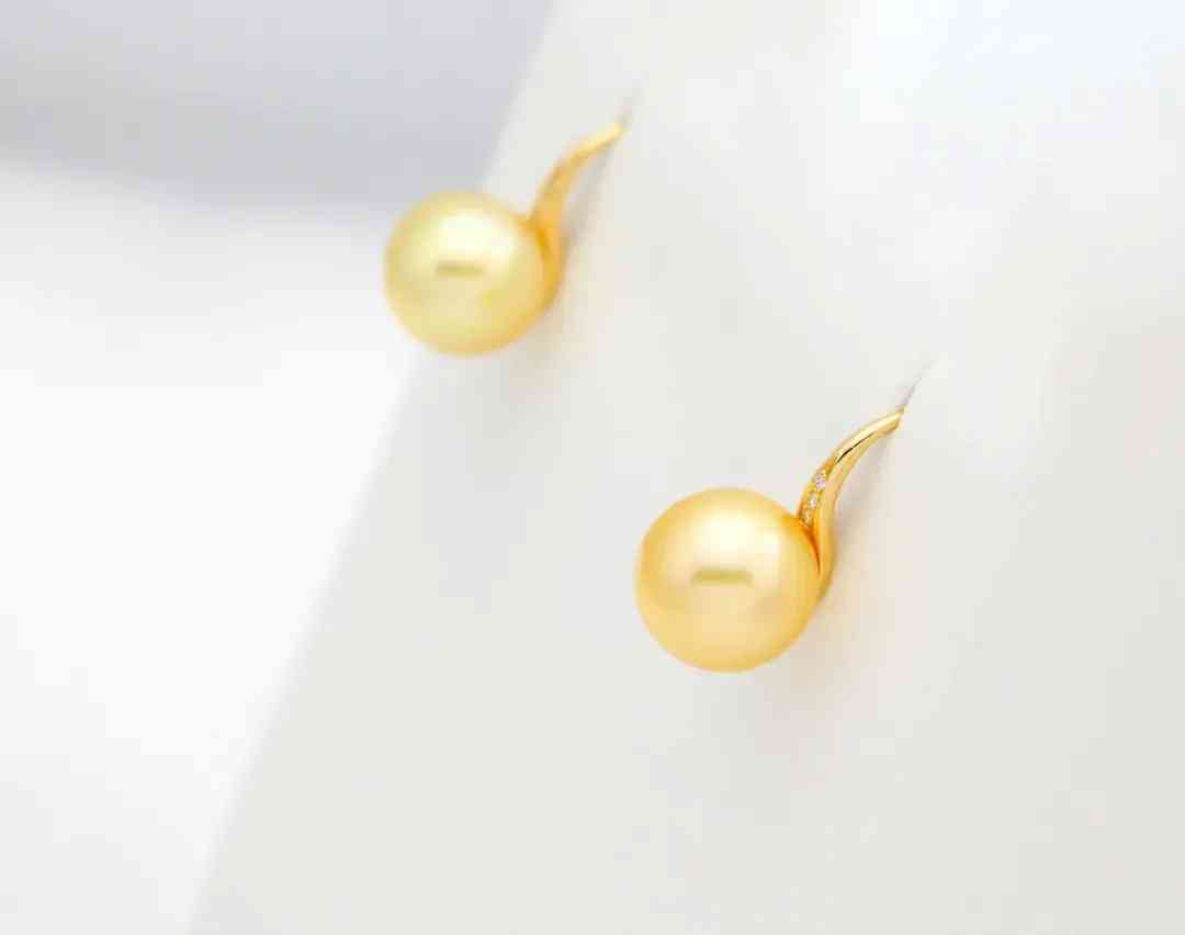 11-12mm南洋濃金珍珠配14K黃金耳墜一對