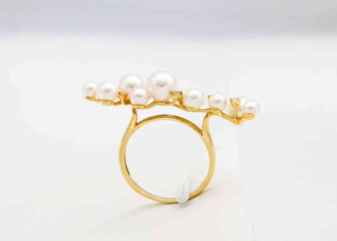 14K黃金日本設(shè)計師款akoya珍珠排戒