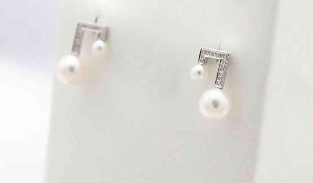 18K白金配日本田崎Tasaki音符款A(yù)koya櫻花粉珍珠耳釘