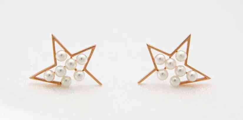 14K黃金日本田崎Tasaki星星款A(yù)koya Baby珍珠耳釘